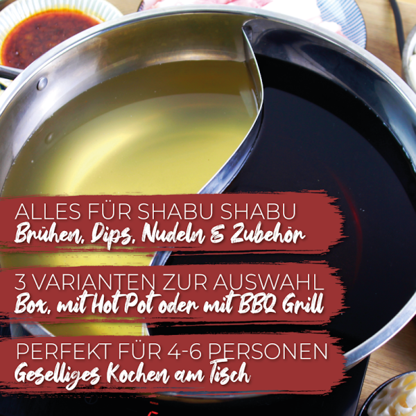 - mit Shabu Shabu Topf: inklusive hochwertigem Hot Pot für das volle Erlebnis
