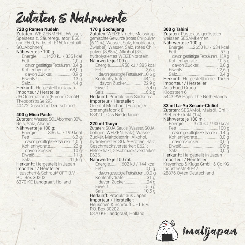7-tlg. Set für 6 Portionen cremige Sesam Ramen + Anleitung, gelingt garantiert.